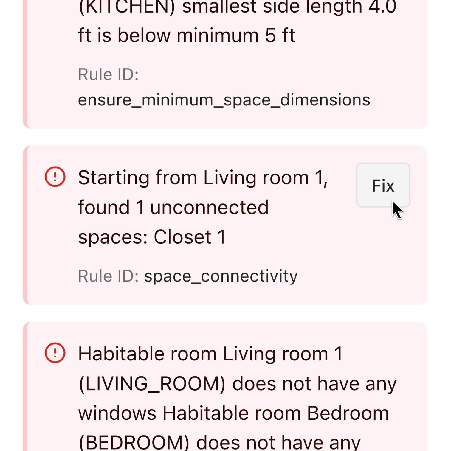 Automatically surface layout, spacing, and compliance issues—without needing to understand building codes.